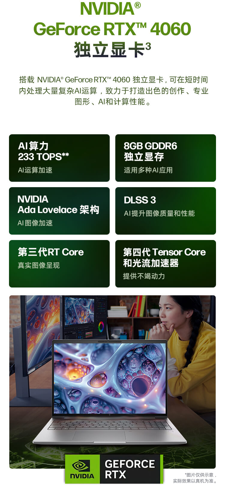 16英寸 QHD 2.5 K 显示屏配备NVIDIA® GeForce RTX™ 4060显卡